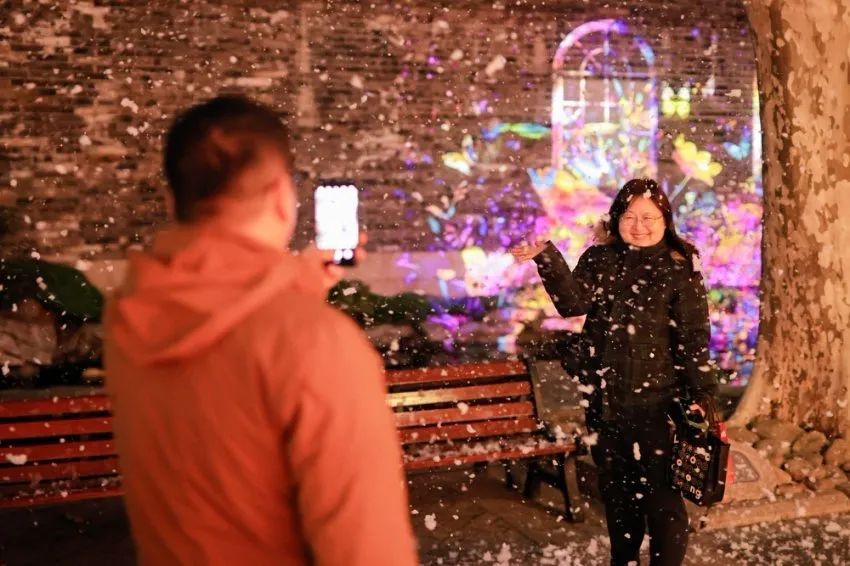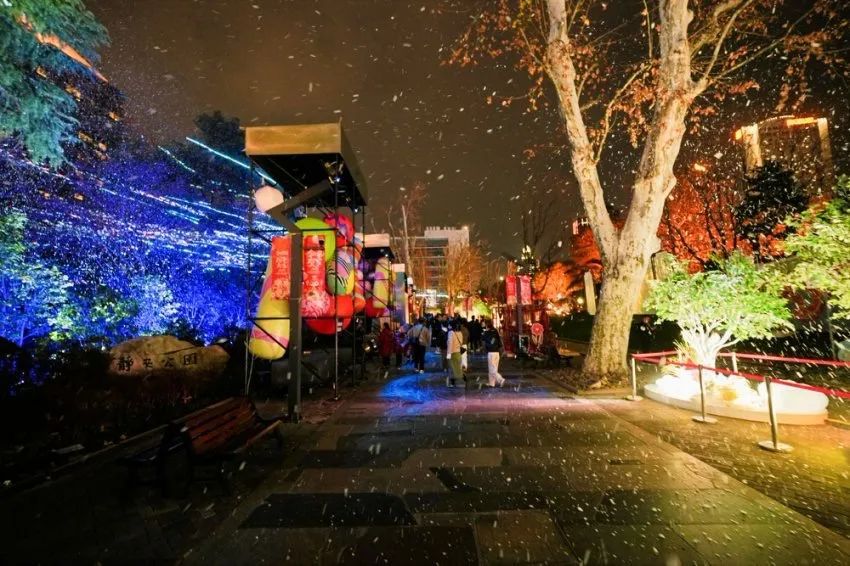 踏入静安公园,脚下时而是星辰闪烁,时而是繁花盛开。公园的古悬铃木道下还有不期而遇的“瑞雪”飘落,南方的小伙伴再也不用羡慕北方的雪了,这里随手一拍就是冬日氛围感“神”图!