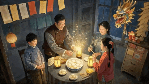 “东风夜放花千树,更吹落,星如雨”,古时候的上元之夜,嘉定人倾城而出,点灯、放焰火、猜灯谜、出龙灯、吃圆团和贺年羹,阖家团聚,同庆佳节,一派欢乐祥和的喜庆气氛。