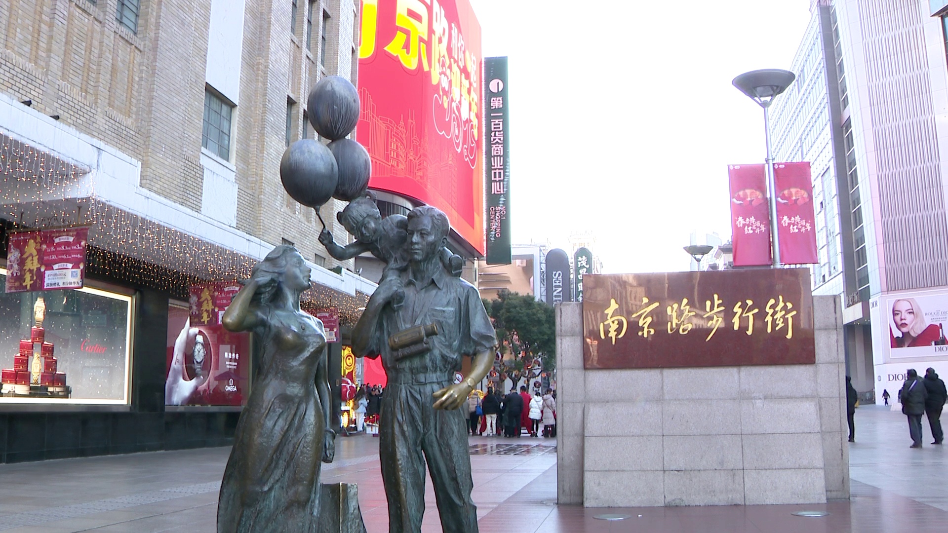 在南京路步行街,早上9点不到,虽说是大年初一,但这里已经有不少市民游客,一些游客来不及放下行李箱就到这里感受中华商业第一街的风采。