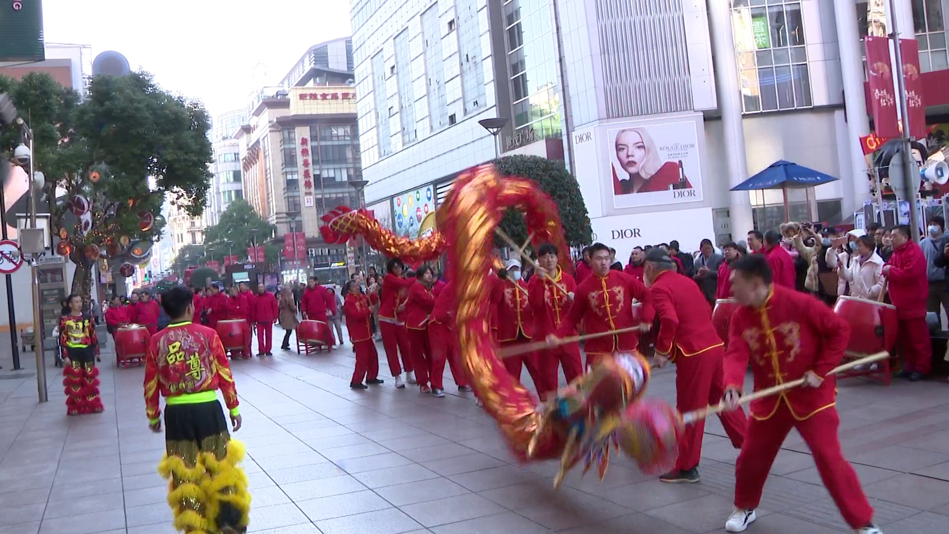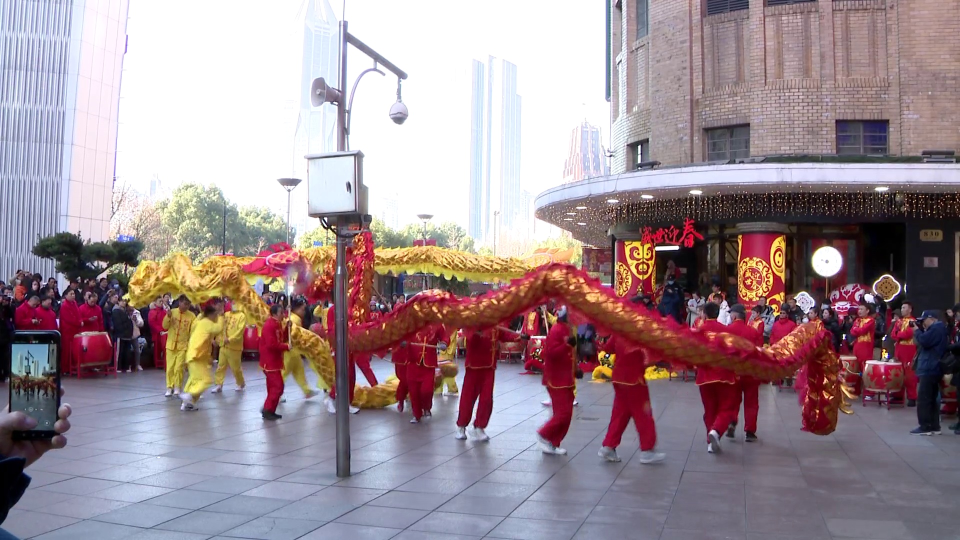 传统春节,舞龙舞狮是少不了的,在南京路步行街上,每年初一都会有舞龙舞狮表演,热热闹闹展示传统,营造年味。大年初一上午9点,南京路步行街上的舞龙舞狮表演吸引了众多市民游客,大家在浓浓的新年氛围中感受非遗传统春节。