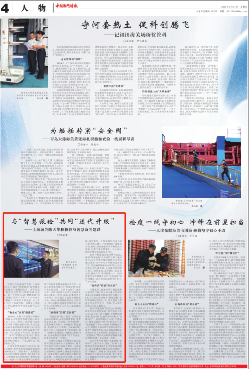 ●08 与“智慧旅检”共同“迭代升级”——上海海关陈天华积极投身智慧海关建设(中国国门时报)