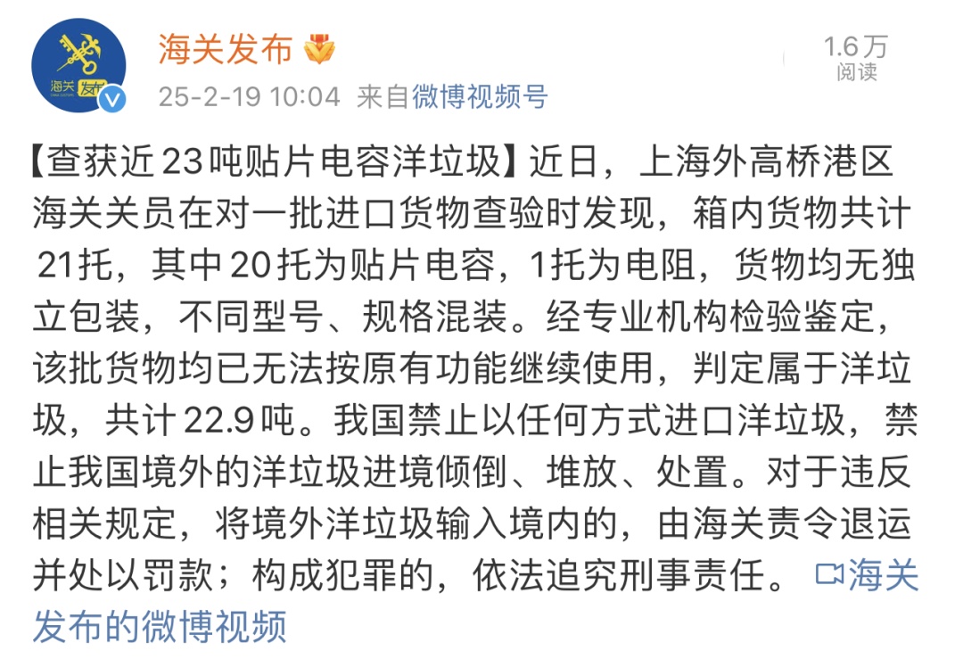 ●14 查获近23吨贴片电容洋垃圾(海关发布)