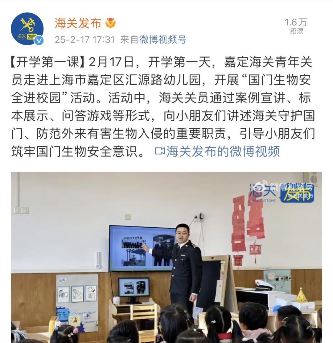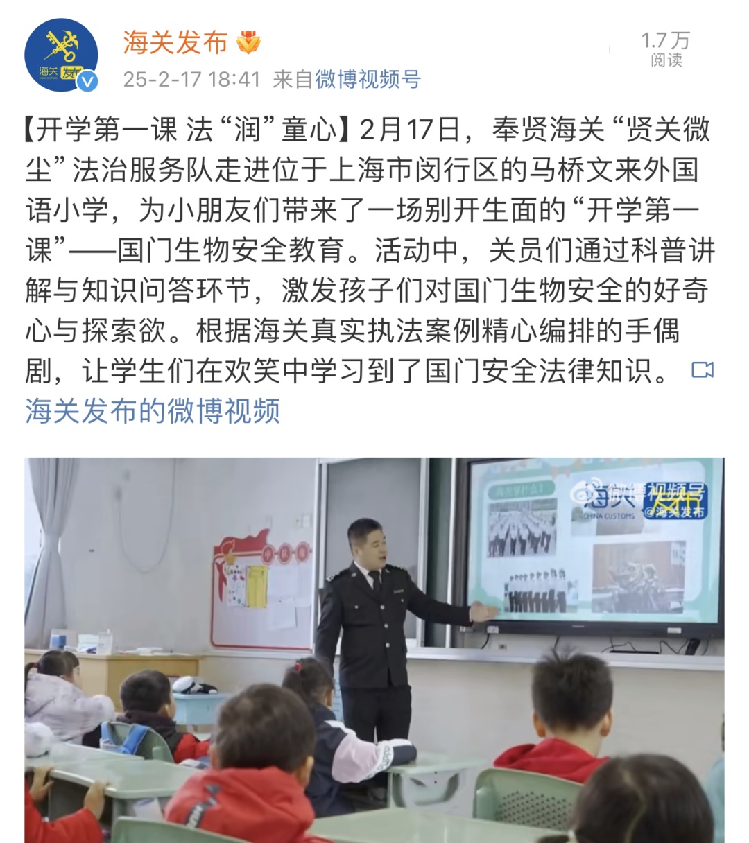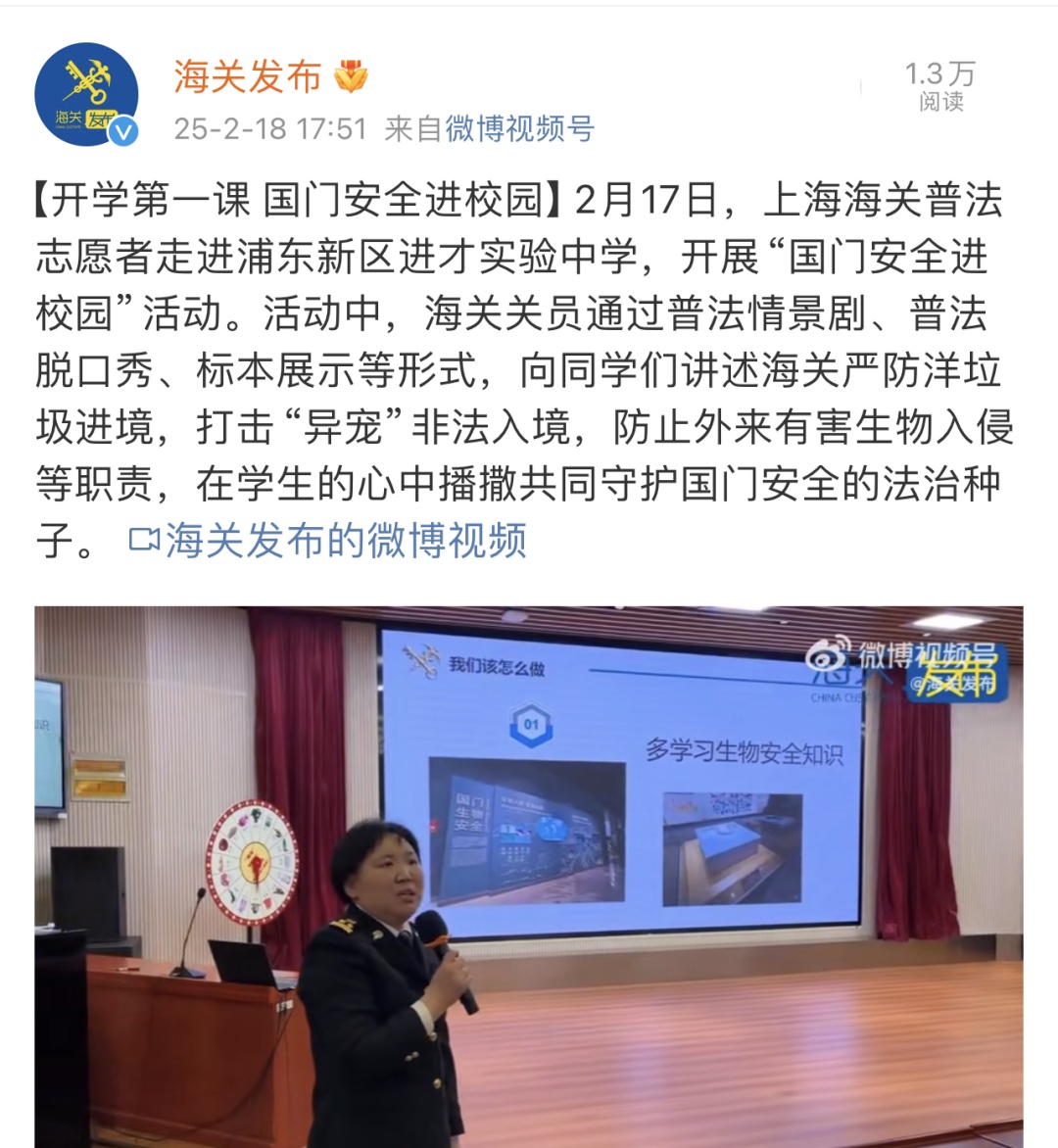 ●15 海关进校园开展国门安全第一课(上海电视台、海关发布)