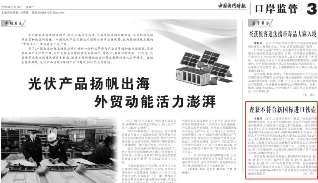 ●09 查获不符合新国标进口铁壶(中国国门时报)