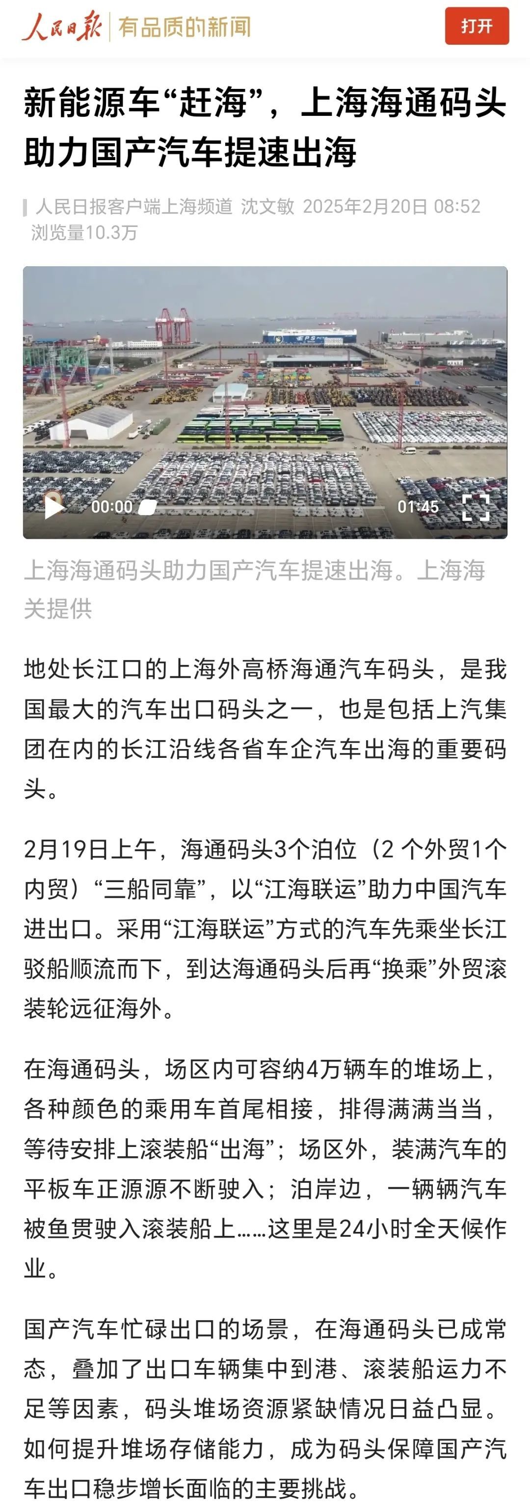 ●02 新能源车“赶海”,上海海通码头助力国产汽车提速出海(人民日报、央视新闻)