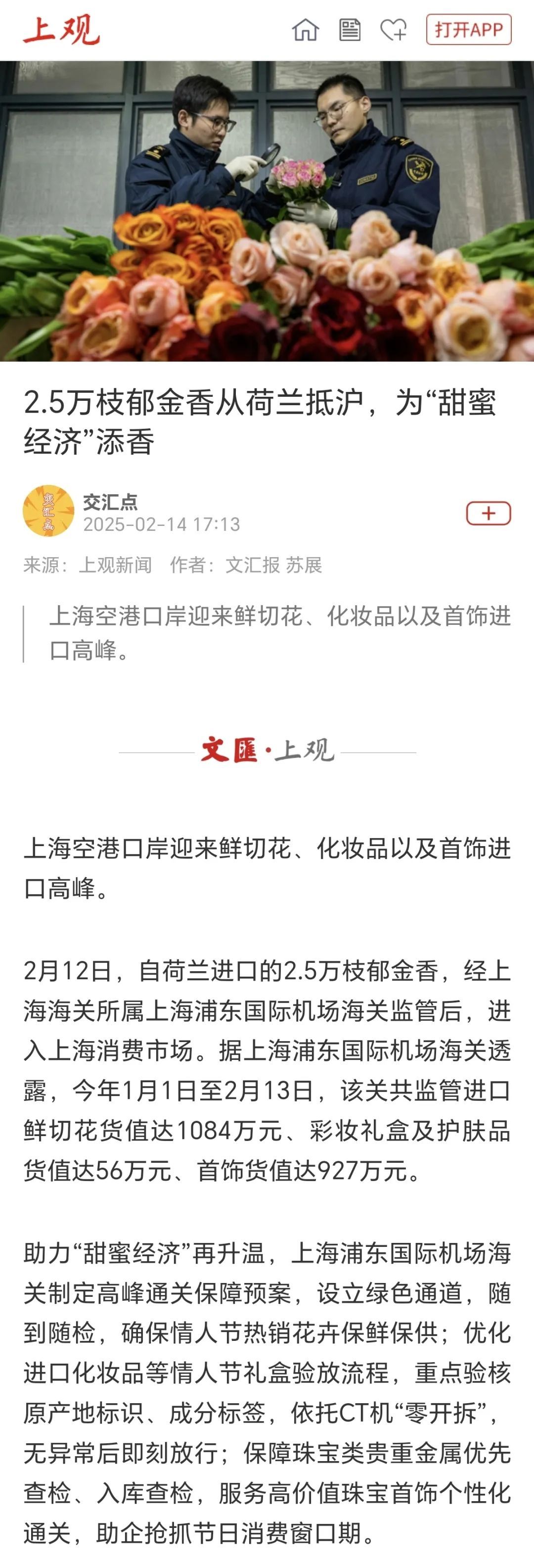 ●05 上海浦东国际机场海关多举措助力情人节“甜蜜经济”再升温(文汇上观、新民上观)