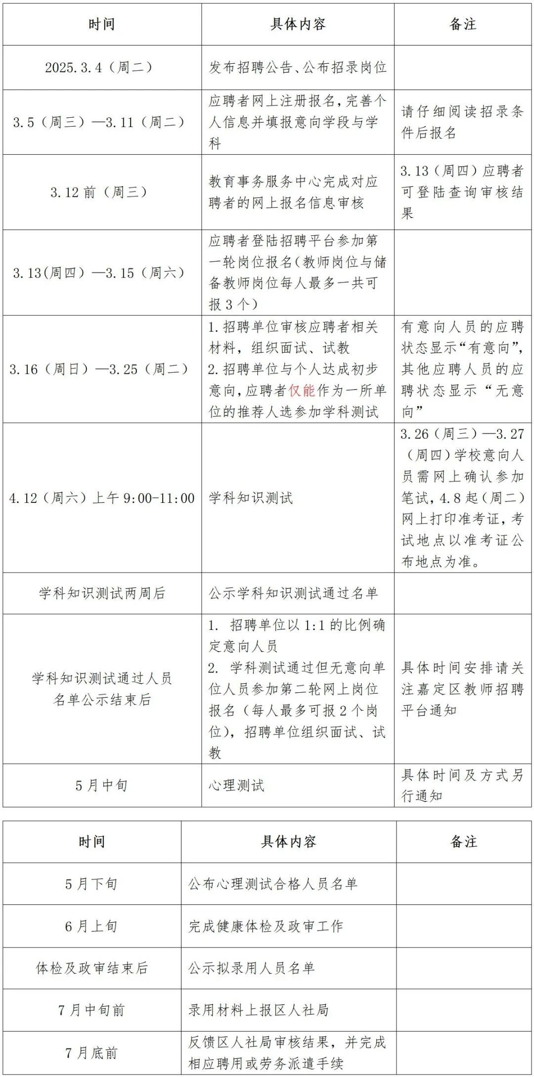 2025学年嘉定区教育系统教师招聘时间安排表(第二批)