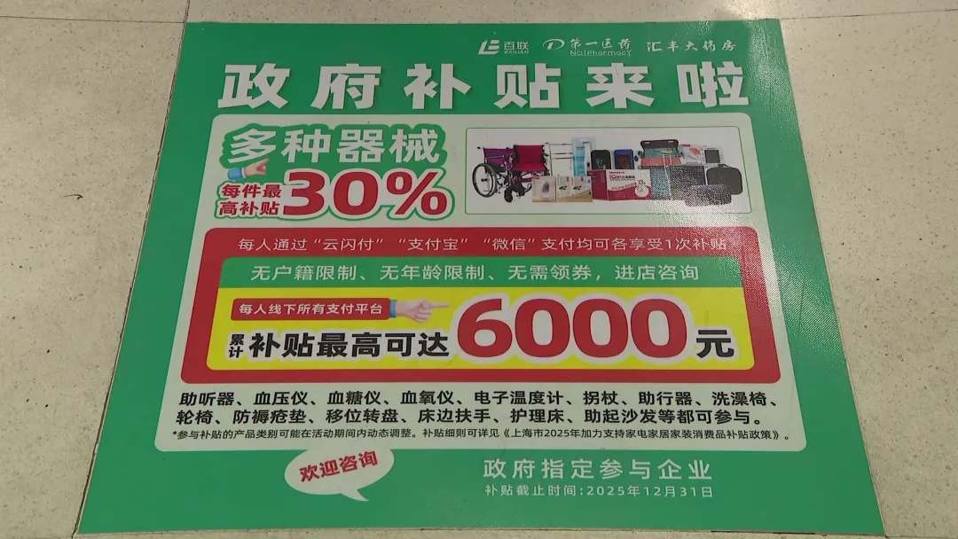 据介绍,今年与去年相比,补贴政策力度加大,对于消费者来说没有户籍、年龄限制,也不需要领券。具体内容有助听器、血压仪、血糖仪、血氧仪、电子温度计、拐杖、助行器、洗澡椅、轮椅、防褥疮垫、移位转盘、床边扶手、护理床、助起沙发等产品。第一医药商店营业员汤杰告诉记者:“去年最高补贴是15%,今年是30%。去年只有一次,每个平台只用一次,今年2000元的额度用光为止,次数是不限的。而且比去年增加了很多东西,比如老年人的护理床,电动、手动的都有,品种很丰富。”