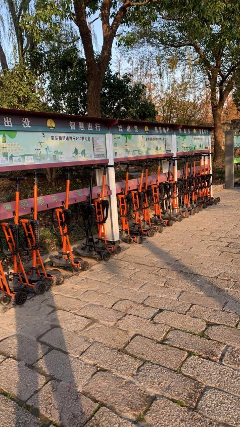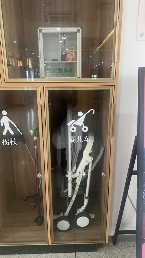 在园区的多个点位设有婴儿车租赁和寄存服务,在湖底车库人行通道附近设有共享童车租赁点,方便带低幼龄宝宝的家长出行使用,让游玩更加轻松自在。