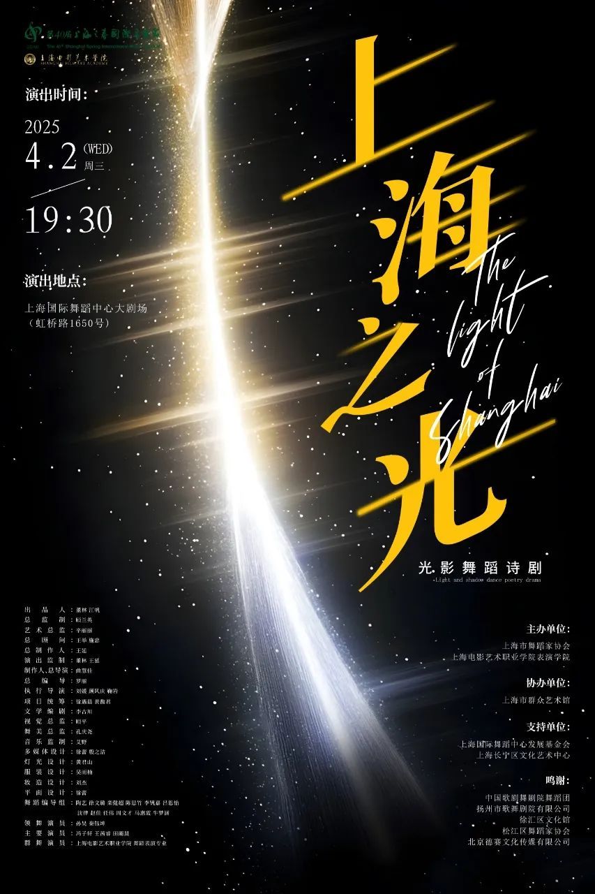 简介:舞剧以“光”为喻,展现上海城市发展脉络与精神风貌。剧中光韵使者如明灯般守护着这座城市,象征着希望与信仰。作品呈现上海改革开放初期的拼搏奋进,尽显城市温情,同时聚焦现代都市生活,描绘出上海的多元与活力,以及不同职业人群的奋斗与追求,以科技感十足的舞蹈与光影互动,展望上海在科技与创新领域的美好未来,寓意着这座城市将继续在时代的浪潮中闪耀光芒。