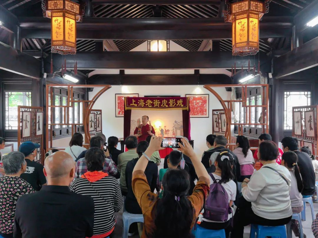 区人文松江活动中心的民乐合奏在照壁舞台悠扬响起,声乐、戏曲与舞蹈轮番登场。皮影戏《西游记》被亲子家庭层层包围,非遗传承人以竹签为笔、光影为墨,再现神话传奇,孩童们随着皮影翻腾惊呼雀跃。