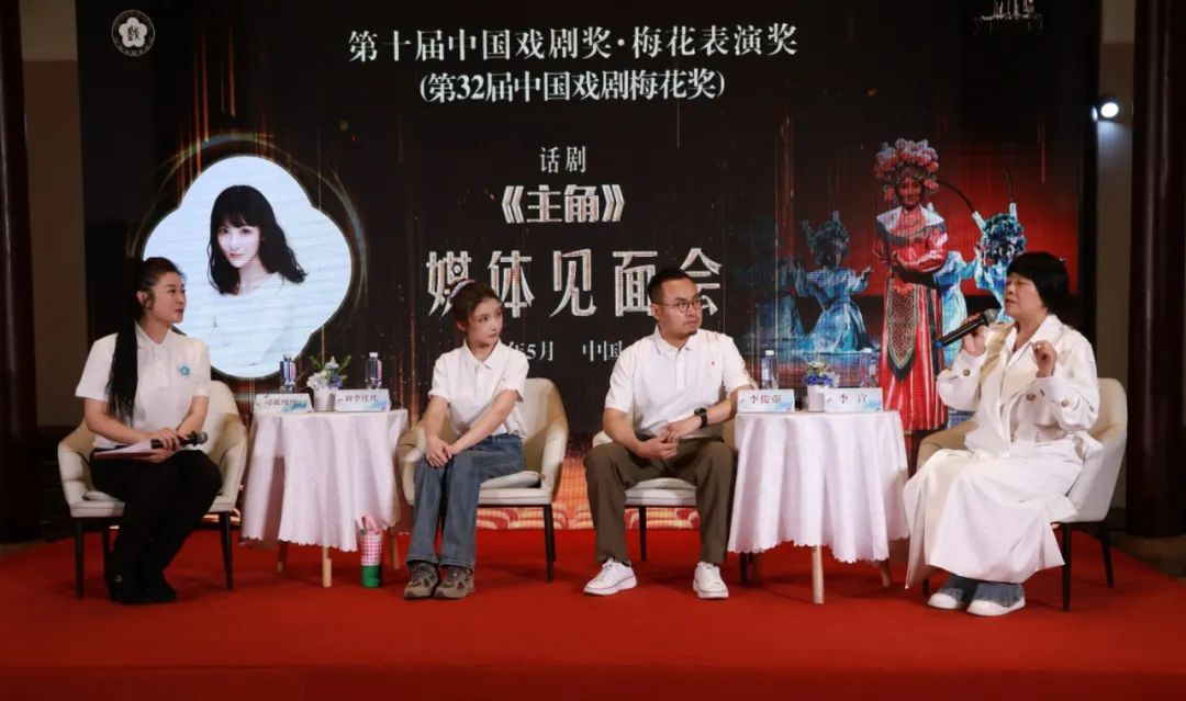 5月8日下午,第32届中国戏剧梅花奖终评剧目——由陕西人民艺术剧院有限公司出品的话剧《主角》媒体见面会在上海商船会馆举行。陕西人民艺术剧院院长李宣,副院长李俊强,本剧主演、终评演员刘李优优出席见面会。见面会由上海人民广播电台戏曲广播主持人司徒纯纯主持。