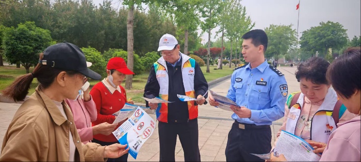 5月15日,在第16个全国公安机关打击和防范经济犯罪宣传日来临之际,莒县公安局经侦民警联合莒县银龄工作室公安局驿站20余名离退休民警走进街头广场、老年大学共同开展防范非法集资主题宣传,助力老年朋友筑牢“钱袋子”安全防线,让“夕阳红”更加绚丽。