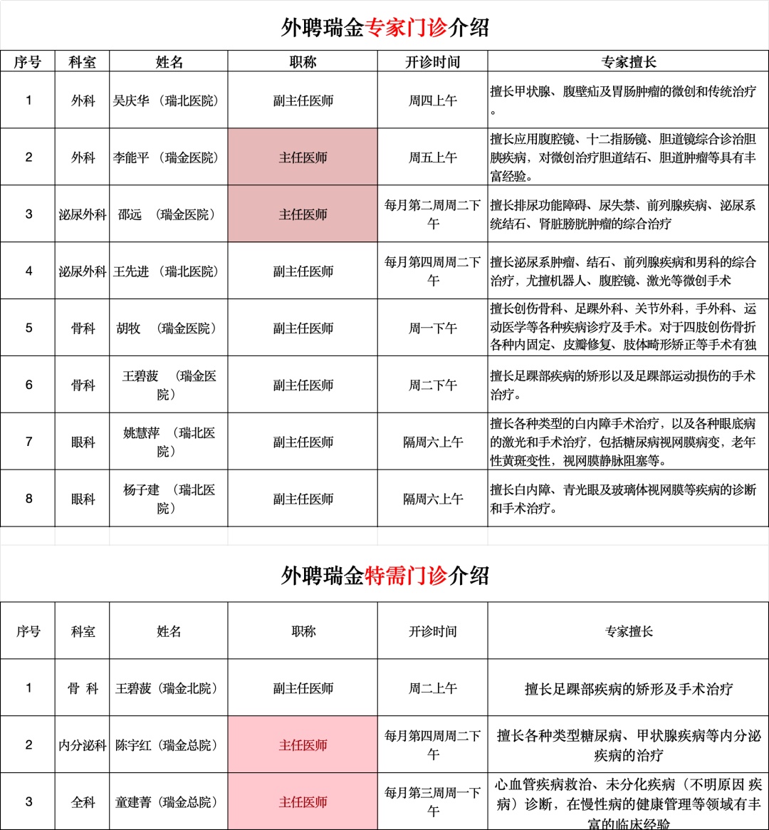 南翔医院外聘专家门诊服务信息