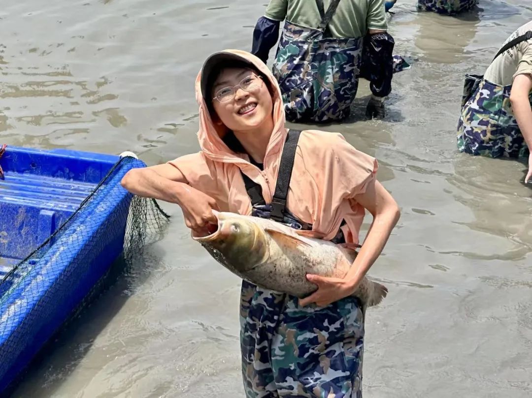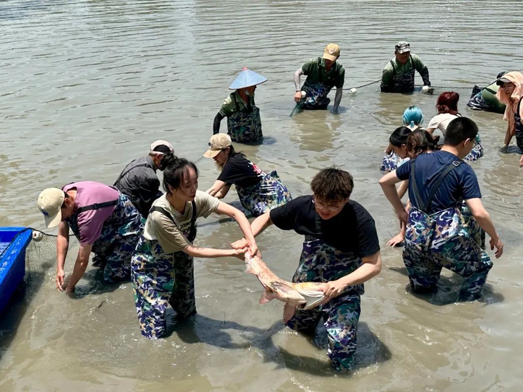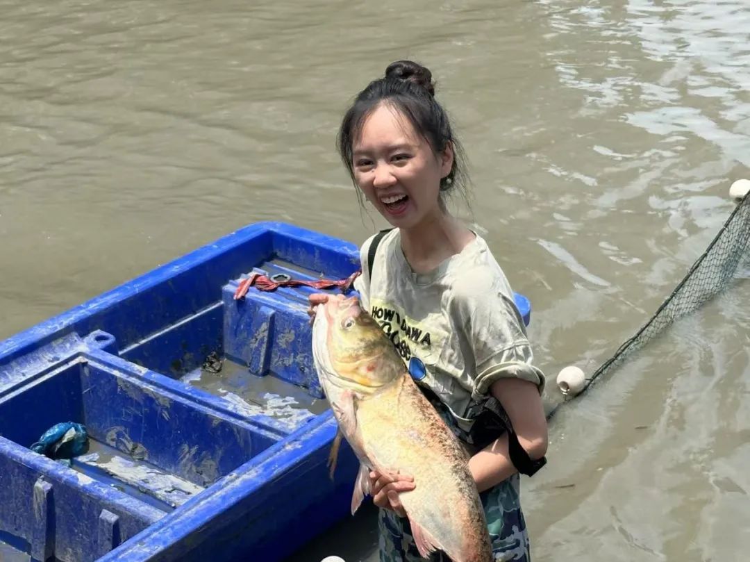 “又掌握了一项新技能,太开心啦,有种回到乡村抓鱼的感觉,我们自己抓到的鱼,吃起来一定非常美味。”来上海外国语大学交流访问的学生刘耀夫说道。德语系研一学生闫紫柔在奋力抓鱼的过程中,不小心陷进泥中,看着狼狈的自己,也忍不住笑起来:“天气很热,但水里可以感受到丝丝清凉,非常期待明天大厨给我们做的全鱼宴!”