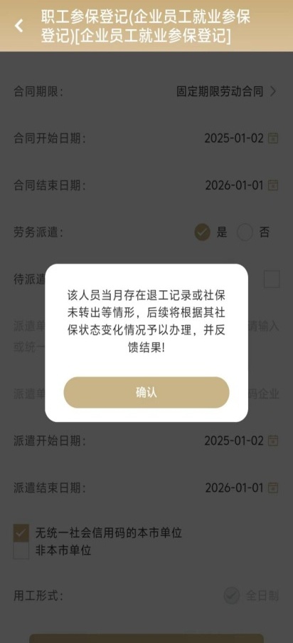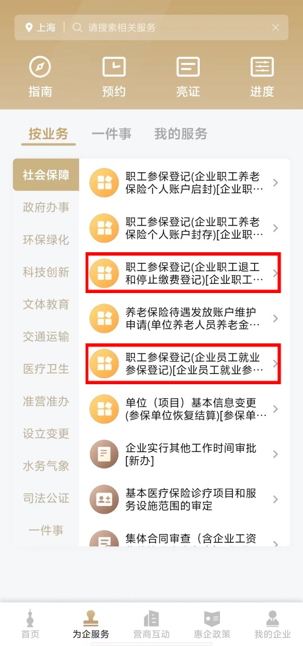 近期,“企业员工就业参保登记”“企业职工退工和停止缴费登记”可以掌上办理啦,企业用户登录“随申办企业云”App即可申请。接下来,小编带你来看看怎么操作吧! 第一步 企业用户登录“随申办企业云”App,点击“为企服务”; 第二步 在“社会保障”栏目点击“职工参保登记[企业员工就业参保登记]”或“职工参保登记[企业职工退工和停止缴费登记]”; 第三步 进入信息页后,录入职工就业参保或退工停止缴费信息; 左右滑动查看更多 第四步 确认提交后,进入提示页; 左右滑动查看更多 第五步 点击确认后,完成事项申请。 左右滑动查看更多 通过上述步骤,HR们就可以轻松掌上办理职工的就业参保登记或退工停止缴费啦!