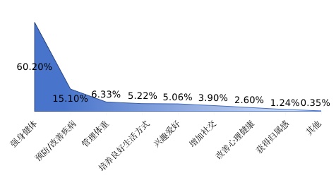 调研结果显示:长者运动健康之家锻炼的老年人以强身健体(60.20%)、预防/改善疾病(15.10%)、管理体重(6.33%)、培养良好生活方式(5.22%)等为主要目的。