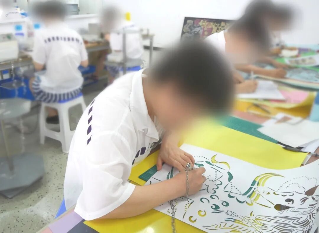 转机源于民警精准的矫治方案。2024年,民警在深入分析李某情况后,了解到她曾有平面设计的专业背景和绘画爱好,便以此为切入点,鼓励她报名参加了监区组织的非遗剪纸班。