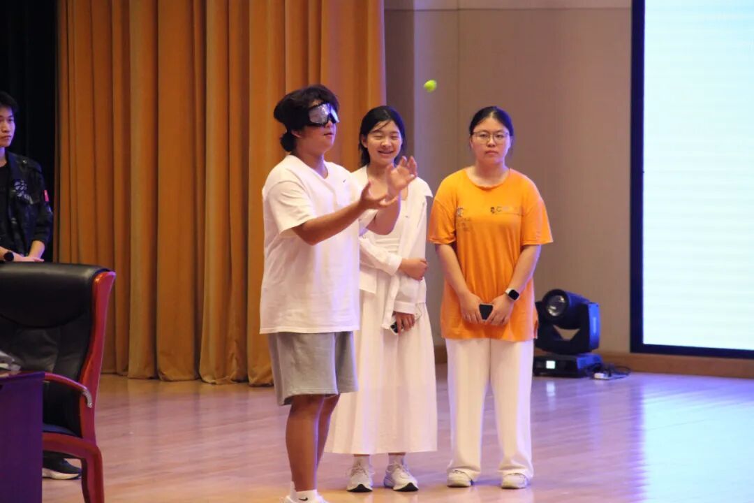 除了反诈,交通安全也是大学生安全生活的重中之重。现场,交警分享了典型案例和知识干货,还邀请学生上台,戴上特制的模拟眼镜,感受醉酒环境下人的真实状态。