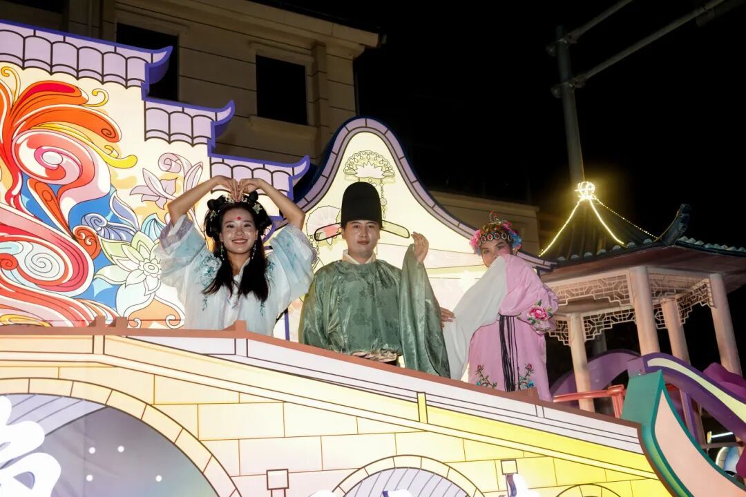 本届旅游节巡游花车共有25辆,展示内容丰富,既有朱家角水乡风韵的诗意呈现,和其他各区“一区一品”的特色展示,还有东航等企业矩阵的品牌风采。其中,朱家角镇精心打造的主题花车——“灵韵朱家角,海上最江南”备受市民观众喜爱。该花车以“江南风骨”为基底,黛瓦白墙勾勒古镇轮廓,飞檐翘角复刻江南肌理,牡丹亭意象唤起“小桥流水人家”的栖居记忆,放生桥静卧其上,宛如连接时空的纽带,见证古镇往昔繁荣与当代生机,中国首枚邮票元素融入其中,让历史在细节中熠熠生辉。“第一辆就是朱家角古镇主题的花车,非常漂亮!我看到花车上有国潮美学、非遗特色等多种文化元素,就像一座流动的古镇博物馆和演艺大舞台。其他的花车也展示了优秀的地方文化,在视觉上非常享受。 ”市民成女士说。