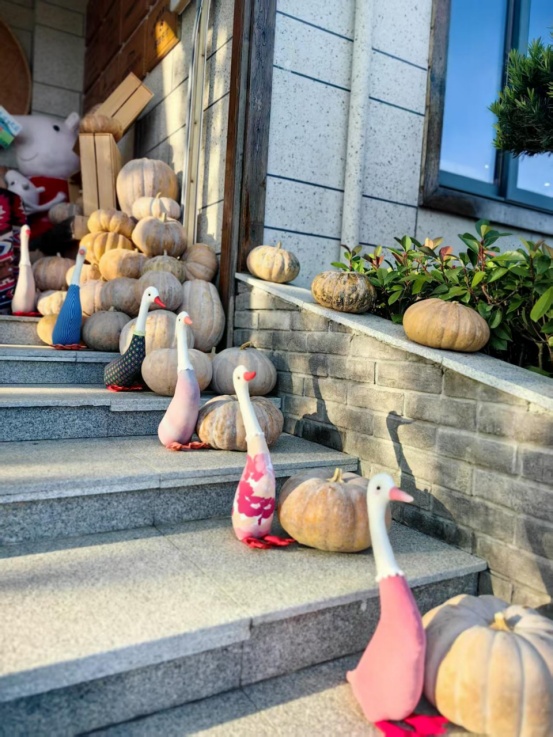 “金秋丰收季”是本次生活节的重头戏之一。眼下正是南瓜成熟的时节,瀛东度假村在民俗体验中心打造南瓜主题打卡区,搭配可爱的向天歌玩偶和特色邮筒,秋收氛围格外浓郁。游客们不仅可以拍摄田园风照片,还能免费品尝暖心又甜美的南瓜粥。