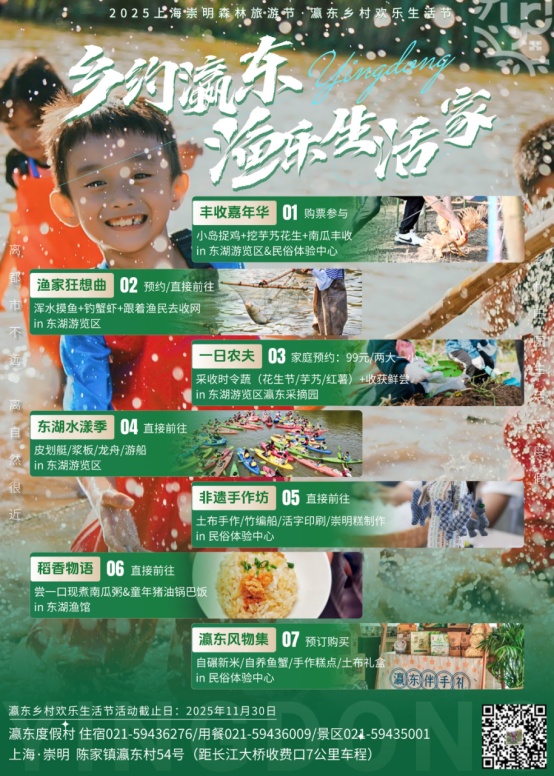 瀛东度假村依托丰富的生态与人文资源,精心推出七大主题精彩活动,涵盖农事体验、非遗手作、水上运动及美食品鉴等多重内容。期待每一位到访的游客都能在这里找到心中的田园牧歌。