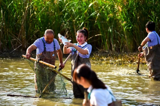 “渔家乐无穷”板块推出浑水摸鱼和趣味垂钓两项活动。参与者可穿上连体皮裤,使用网具进入专门的摸鱼池塘捕捉活鱼。趣味垂钓则提供钓蟹、钓虾和钓花鲈等多种体验,并配备相应钓具,适合全年龄段游客参与。
