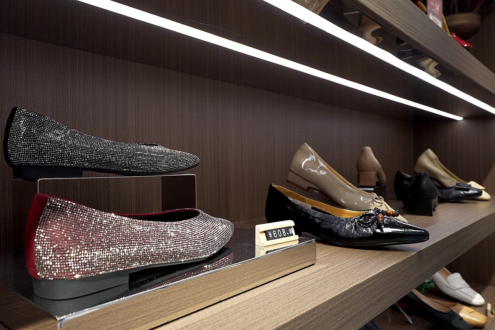 上海鸿翔百货有限公司副总经理、上海蓝棠—博步有限公司总经理孙晓骅介绍说,久穿不变形以及“轻、巧、雅”的品牌气质是众多女性消费者选择蓝棠的理由。其中,经典款之一的浅口鞋在鞋型上充分贴合亚洲人的脚型,楦型也充分参考人体工程学数据,前掌还做了加宽设计。此次全新推出的尖头中粗跟款浅口鞋,选用优质羊皮材质,柔软贴合双脚,尤其能够为优雅、精致的职场女性“加分”。