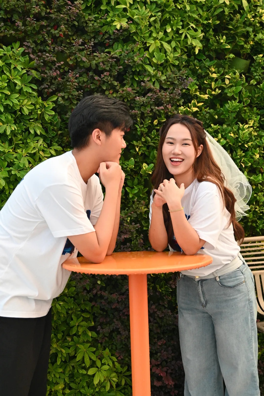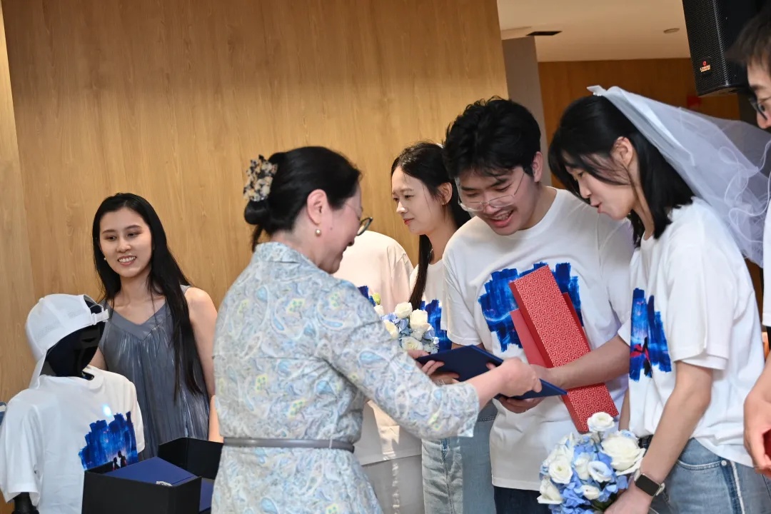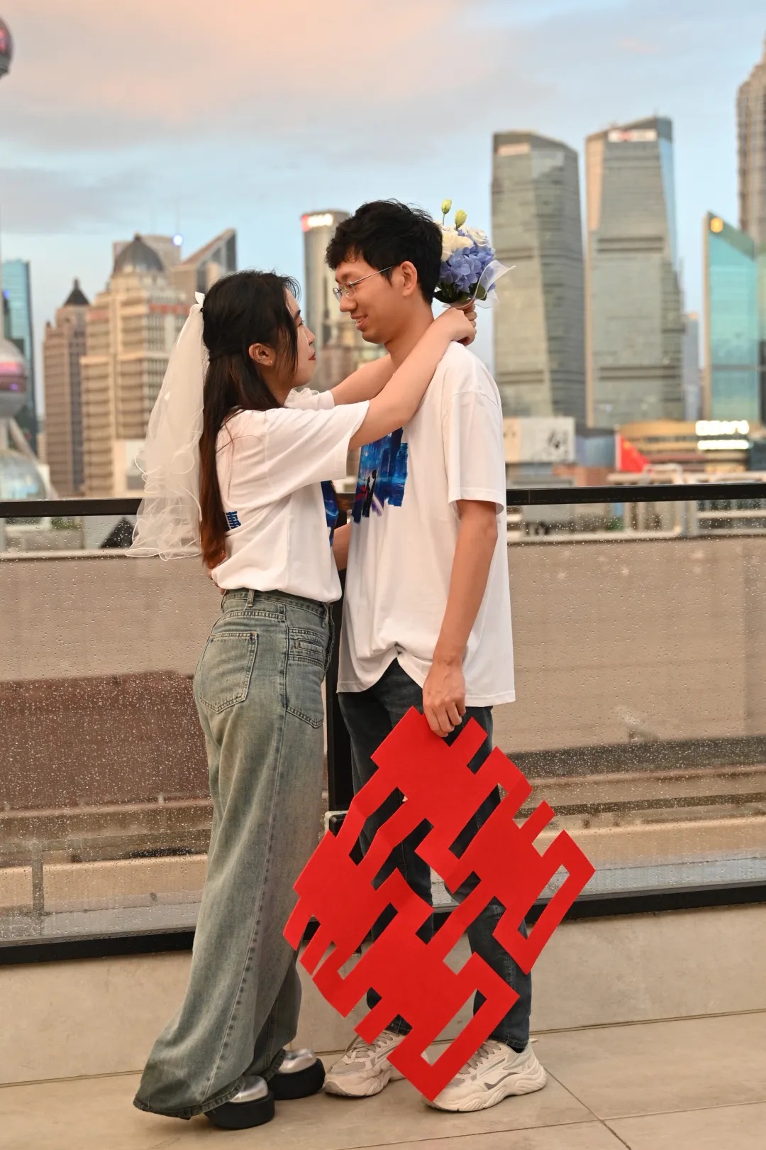 黄浦区的科创新人们在现场也体验了科技赋能爱情的甜蜜。人形机器人递证书、AI生成“50年后金婚影像”、VR时间胶囊封存幸福瞬间……科创元素贯穿全程,让誓言不仅被听见,更被科技温柔收藏。