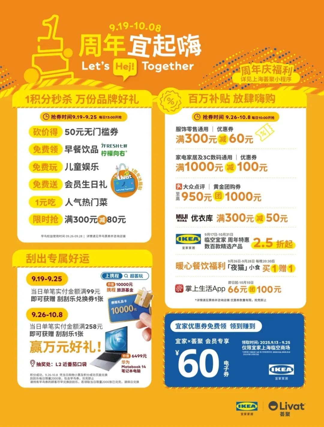 本次周年庆典持续至10月8日,贯穿十一黄金周,上海荟聚携手宜家上海临空商场和租户伙伴推出多元创新场景与丰富活动,激发顾客对理想生活方式的想象,构筑精彩纷呈的城市休闲聚会时光。