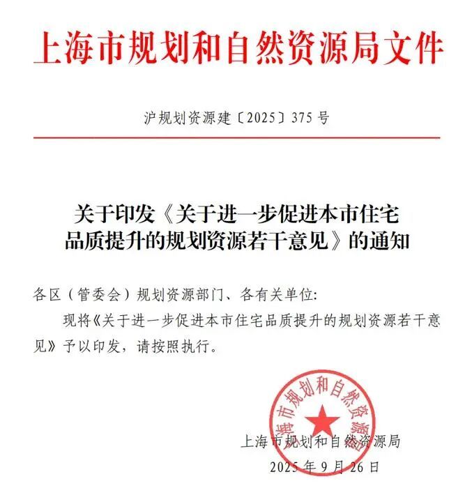 据悉,新规自9月26日起施行,主要适用于上海农村自建房外的住宅项目。保障性租赁住房、旧住房成套改造或拆除重建项目另有规定按相关规定执行。