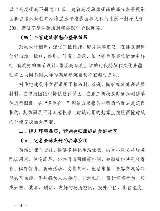 在提升小区整体环境品质方面,新规也有变化。