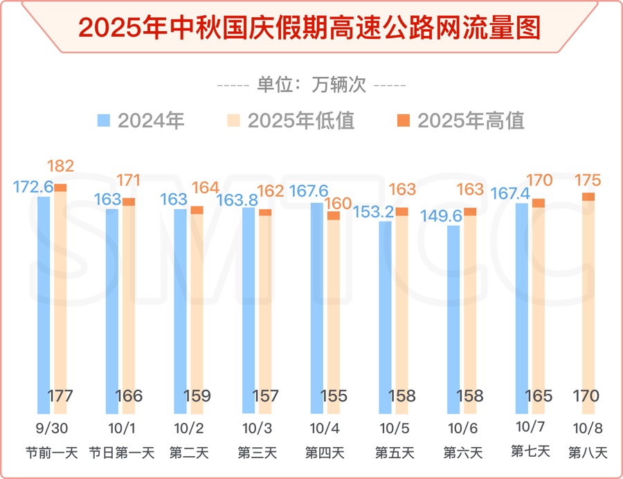 这份出行指南也显示,中秋国庆假期,快速路日均流量达260万-265万辆次,同比增长在3%以内。