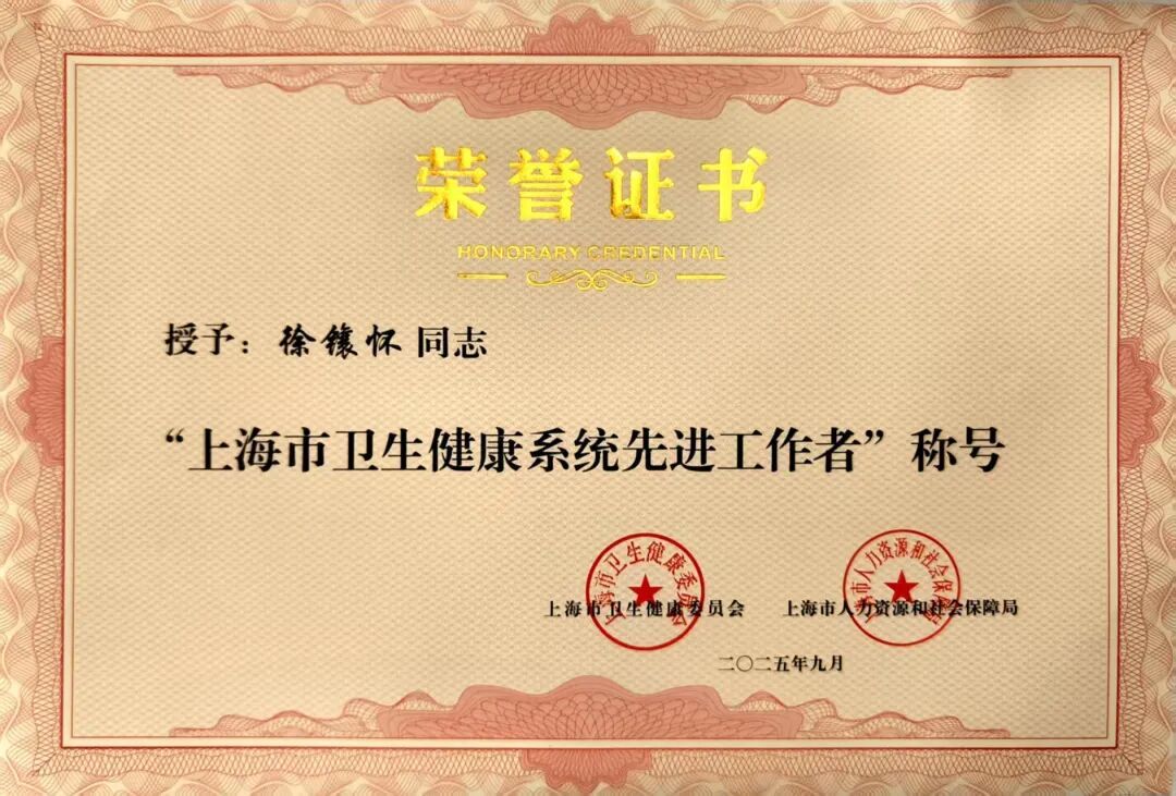 近日,同济医院呼吸与危重症医学科徐镶怀医师荣获由上海市卫生健康委员会、上海市人力资源和社会保障局评选的“上海市卫生健康系统先进工作者”荣誉称号。