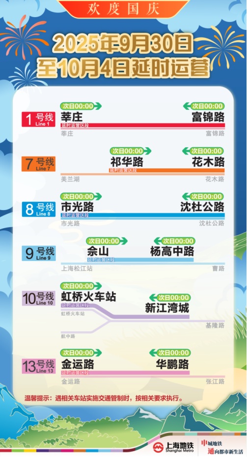 提升保驾力度满足客流出行 9月30日至10月4日六线延时运营