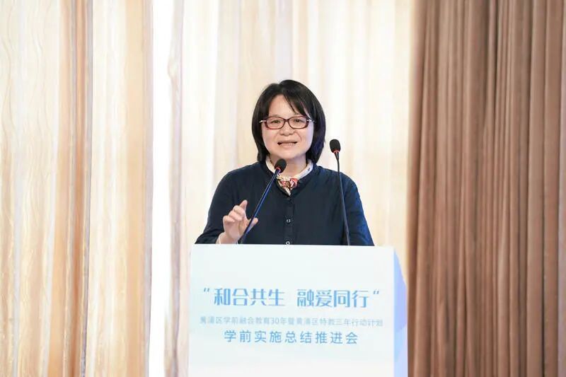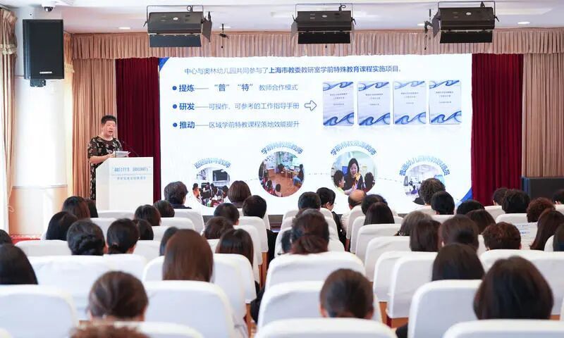 在本次活动中,学前特教指导中心俞丛晓回顾了黄浦学前特教三十年的发展历程。奥林幼儿园、西凌第一幼儿园、思南新天地幼儿园立足自身研究成果,分别围绕“一生一案”“教研破圈”“环境浸润”三大核心方向,分享了宝贵的实践经验。