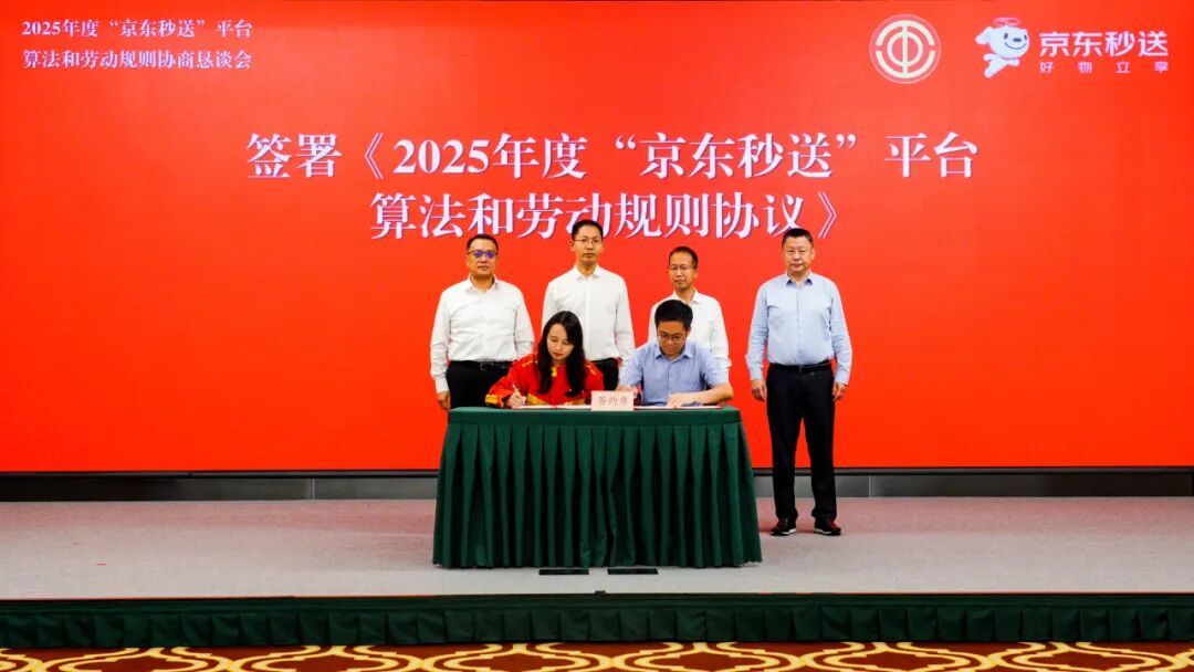 △在全国总工会、中国财贸轻纺烟草工会、上海市总工会、杨浦区总工会的共同见证下,《协议》由劳动者方代表与平台方代表签字确认生效。