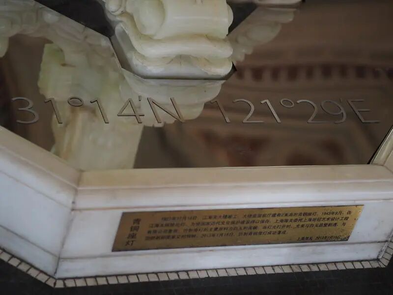 步入一楼,首先映入眼帘的是时空原点板块,大厅中央的白玉兰装置与钟楼旗杆位置对应,是20世纪20年代上海地理原点坐标(北纬31°14'20.38",东经121°29'0.02")。
