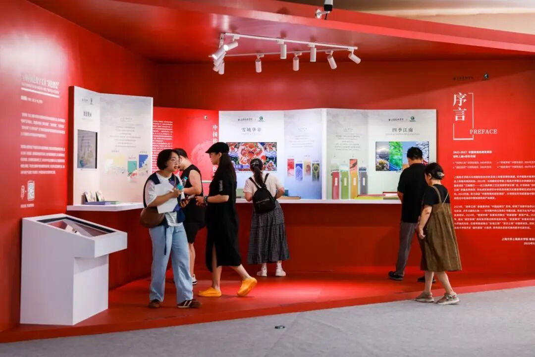 上海大学特别推出设计新海派“设计跨界,文脉新生”的主题展览,设四大特色展区,集中展示上海大学、特邀品牌、协同院校与非物质文化遗产代表性传承人的合作成果,以当代设计解构传统技艺,以非遗元素重塑现代美学。