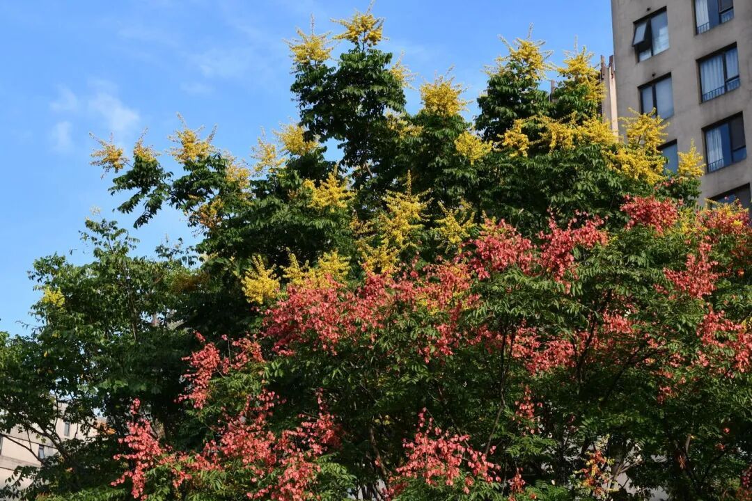 藏在街头巷尾的栾树,把嘉定的秋天酿成诗:它用黄花预告秋的到来、用红果点缀秋的斑斓,用一场“黄金雨”细腻秋的诗意。