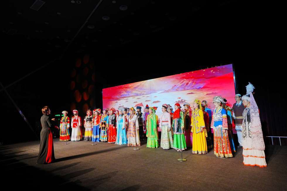 演出在百灵民族合唱团《没有共产党就没有新中国》的歌声中拉开帷幕。这是一支由上海少数民族文艺爱好者组成的合唱团,成员们以其鲜明的民族特色和精湛的艺术表现享誉上海。