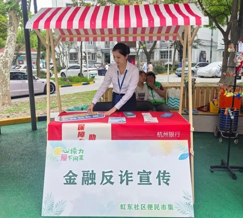 2025年9月20日,杭州银行上海分行营业部走进虹桥街道虹东社区“童心接力 爱不闲置”便民市集,打造“金融小站”服务点。聚焦“一老一小”重点人群,工作人员提炼“三牢记”反诈口诀(不轻信、不转账、多核实),指导12位老年人完成“金护”APP注册;面向青少年开展人民币认知卡互动游戏,传递理性消费观念。活动累计接待咨询百余人次,发放宣传资料百余份,将金融知识融入生活场景,推动宣教从“说教式”向“浸润式”转变,彰显金融服务的温度与实效。