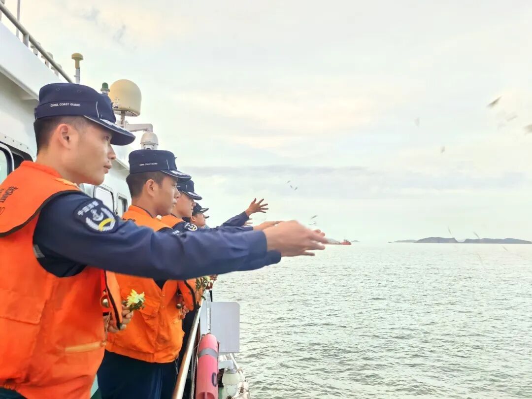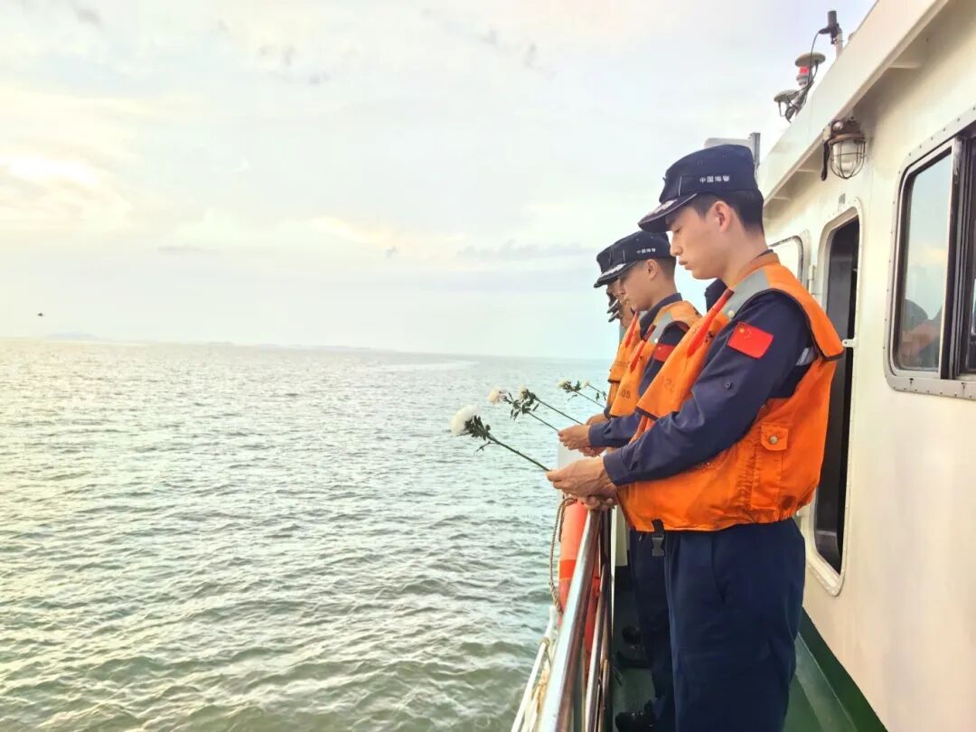 为传承和弘扬伟大抗战精神,在第十二个烈士纪念日到来之际,上海宝山海警局举行“缅怀革命先烈、矢志护海卫疆”海上祭奠活动。 正在执行海上任务的执法员们面向大海,鸣笛致敬,脱帽致哀,遥祭英烈。默哀完毕后,执法员们将束束黄白菊花庄重地洒向蔚蓝大海,朵朵花瓣与舰艇犁开的浪花交融,飘向远方,象征着先烈们的崇高精神如浩瀚海洋,永世流传! 缅怀英烈,是回溯历史的敬畏;砥砺前行,是面向未来的承诺。上海宝山海警局执法员们纷纷表示,将继承和弘扬伟大英烈精神,将无尽的哀思转化为捍卫国家海洋权益和维护辖区海域安全稳定的强大动力,让伟大抗战精神在万里海疆永存!