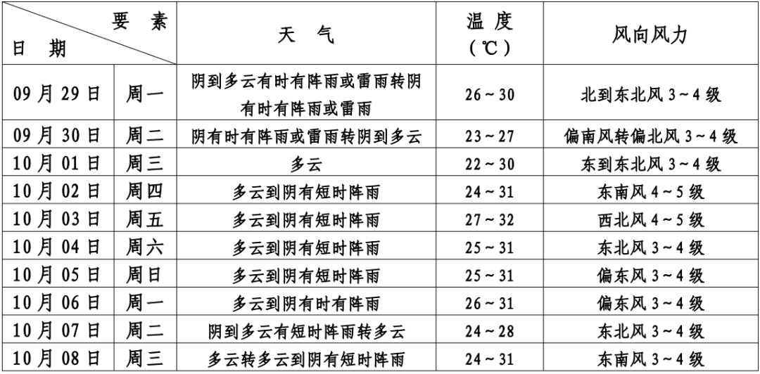 国庆中秋假期,上海天气条件总体适宜出游。长假一头一尾天气较好。2—5日云系较多,降水较弱,气温较常年同期偏高。中秋节当天雨水相对明显。长假后期受冷空气影响,气温有起伏。