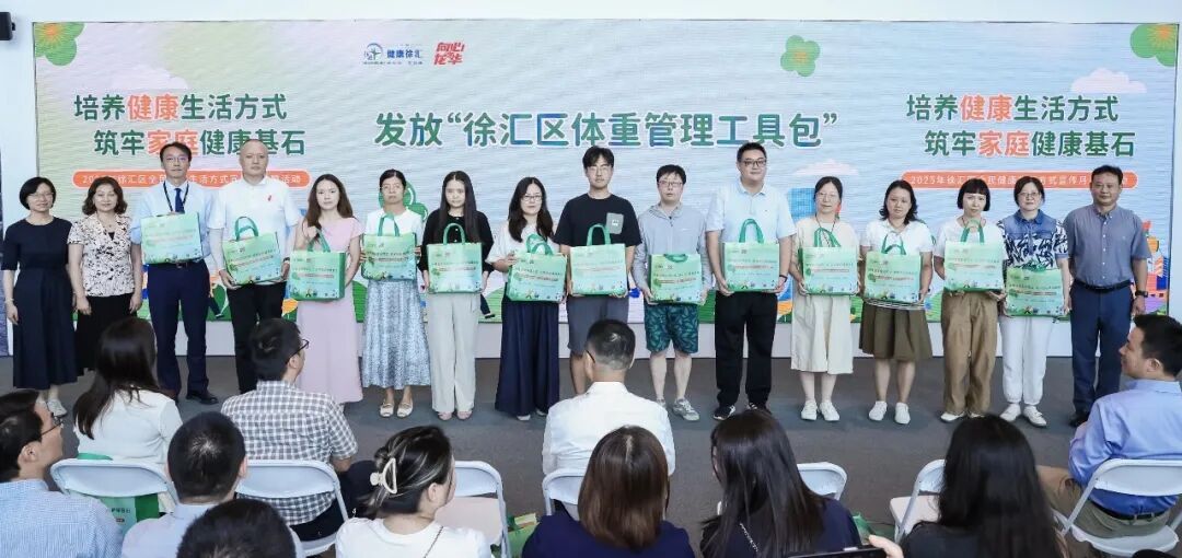 健康家庭代表和西岸智塔楼宇代表收到“徐汇区体重管理工具包”