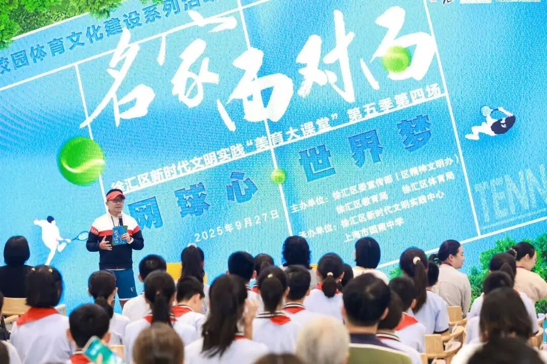 “名家面对面”徐汇区新时代文明实践“美育大课堂”第五季第四场《网球心·世界梦》日前走进上海市园南中学罗城校区,邀请上海久事网球队主教练邵东路,为近100位学生及家长带来了一场以网球学习为主题的体育文化课程。 活动现场 以“文体融合”创新路径 全面提升学生综合素养 本次活动以体育作为美育教育的主题,通过体育名家面对面,以“文体融合”的文明实践新路径,推进体教结合,大力发展体育运动,将体育文化贯穿育人全过程,提升学生的体育素养和审美能力。 活动现场,邵东路受聘为徐汇区美育工作顾问。随后,邵东路与参与者们进行了面对面的交流。他不仅分享了多年执教的经验,还回应了学生和家长们最为关切的问题——从怎么科学安排训练强度,到如何平衡学业与运动,再到如何发掘孩子的天赋和预防运动伤病。 邵东路受聘为徐汇区美育工作顾问 “训练并非越多越好,而是要在恰当的节奏中持续成长。”邵东路特意强调了科学规划的重要性,并提醒家长陪伴与理解是孩子坚持下去的关键所在。在谈到如何发现天赋时,他分享了与网球明星张之臻一路走来的故事,让参与者们真切感受到了网球明星一路走来背后的坚持与热爱。 现场实训环节 活动还安排了互动问答及现场实训环节。邵东路带领学生们练习动作,更有学生与邵东路进行了一场网球比赛,精彩的挥拍和击球引得学生们不时发出“尖叫”和掌声。 把优质资源送进学校 助力校园体育文化建设 本次活动走进的上海市园南中学罗城校区为徐汇区新落成的一批校区,同时也是该校区网球场地的首次启用。上海市园南中学相关负责人表示,本次活动一经推出便受到了学生和家长的欢迎。作为新校区举办的首场专业体育文化活动,此次活动与学校的体育特色高度契合,能够很好地引导学生喜爱网球、热爱体育。同时,学校也希望这样的优质资源能更多地走进学校,持续丰富校园体育文化生活,助力青少年在运动中强健体魄、砥砺品格。 上海市园南中学创建于1994年,是区域内一所优质的公办初级中学。作为总校一体化管理的新引擎,罗城校区配备了室内标准网球场,精心设计了网球特色课程,创设了关于网球的基础理论模块、技能训练模块以及综合实践模块的课程体系,组建了一支网球教学团队,并将定期邀请校外专业网球教练等老师来校进行指导和授课。 活动大合影 据了解,徐汇区还将持续举行“名家面对面”系列活动,通过流动的“美育大课堂”,广泛邀请艺术、体育及教育等领域的名家,推动优质资源转化为触手可及的精神文化公共服务“产品”,让更多市民群众和青少年走进美育课堂,提升市民艺术文化和体育文化素养。 记者:徐喆衎、施昱辰 编辑:罗时珎 转载请注明来自上海徐汇官方账号