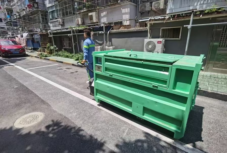 自2021年以来,各区因地制宜推广装修垃圾收运新模式,对不具备设置封闭厢房条件的住宅小区,推广移动式专用回收箱或临时交付点等先进模式。比如,徐汇区、虹口区采用小型组合箱,普陀、杨浦区采用流动式专用回收箱,静安、嘉定区推行“以箱换箱”,进一步优化源头投放环境。按照今年全市推动新增500个(累计2000个)小区使用专用回收箱模式的目标,截至目前已实现新增418个(累计1918个),占全市1.3万余个小区的14.3%,持续推广住宅小区装修垃圾收运新模式覆盖。