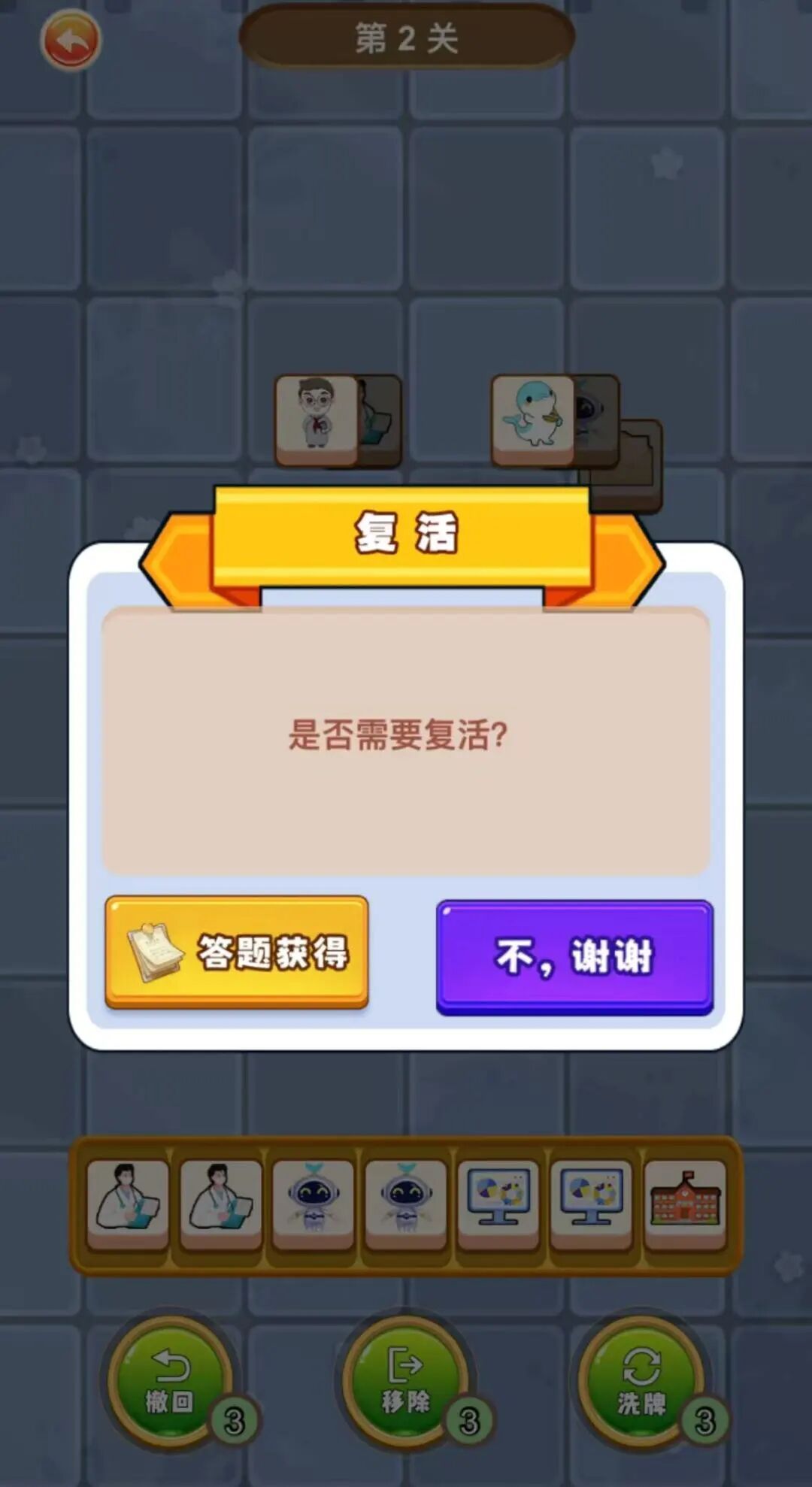 2.闯关失败别慌!回答反邪题目获取“撤回”“移除”“洗牌”等游戏道具以及复活资格,答对一题即可“续命”!边玩边学,轻松成为反邪知识达人。
