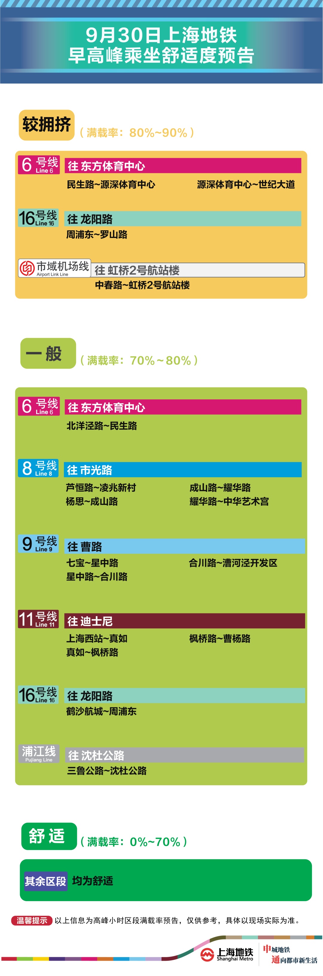 为提升上海地铁早高峰期间出行服务水平,提升乘客乘坐体验,上海地铁向乘客提供乘坐舒适度预告,方便乘客提前做好出行准备。