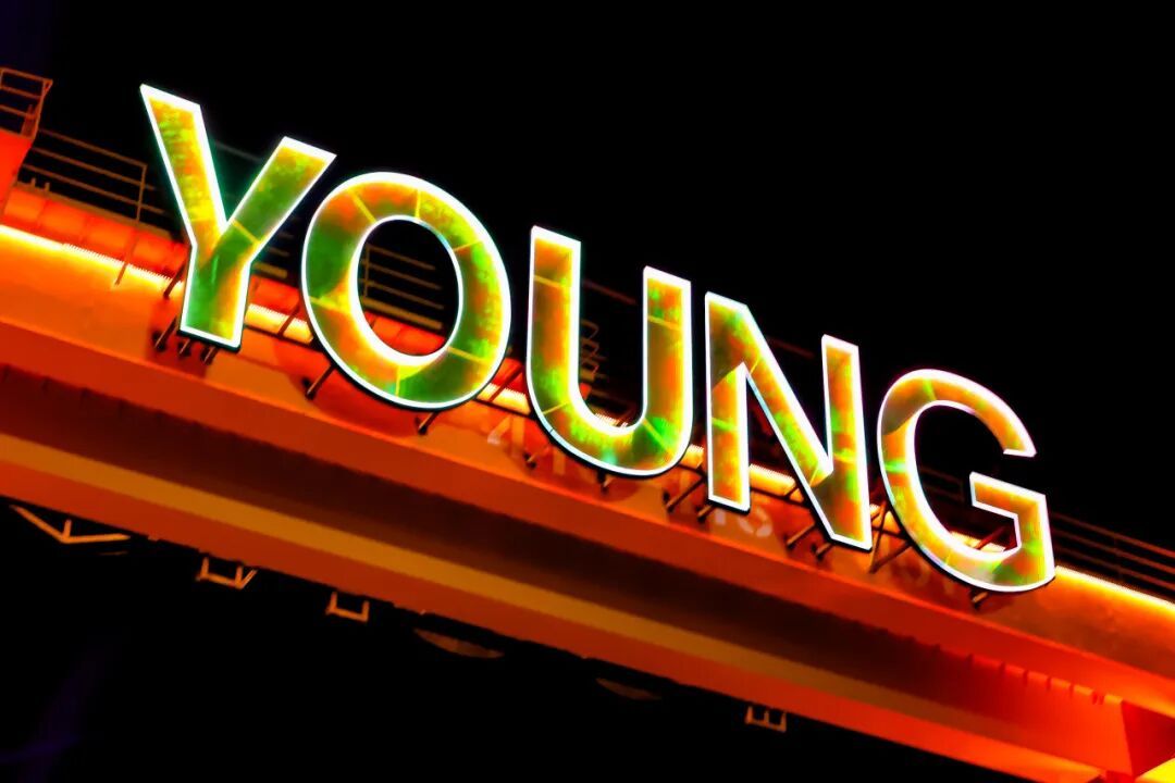 复兴岛上还精心打造了多个光影装置打卡点:艺术家光影装置《星蕴》灵感源自宇宙起源与光的传递,营造出万花筒般斑斓的视觉体验。沿江步道栏杆、塔吊、屋顶等空间定制主题灯牌,将“Y、O、U、N、G”五个字母贯穿整个滨江。